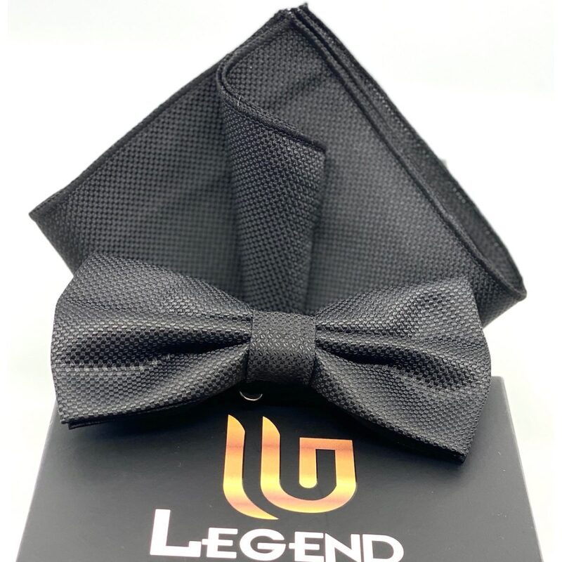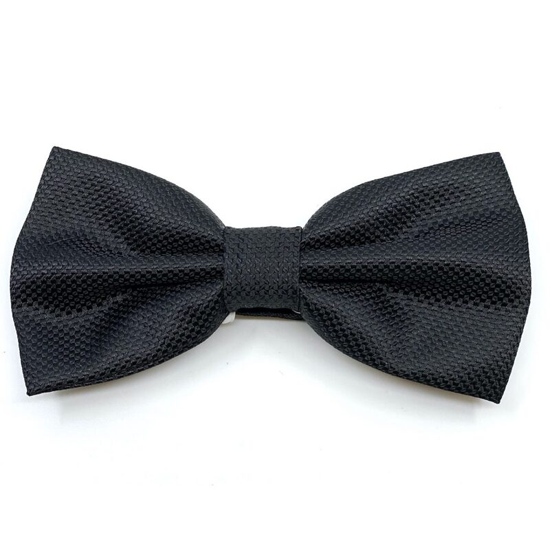 Bow tie on oxford type fabric in black color. It is accompanied by a wipe in the same color as a gazi.
