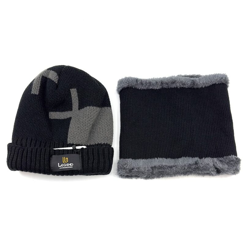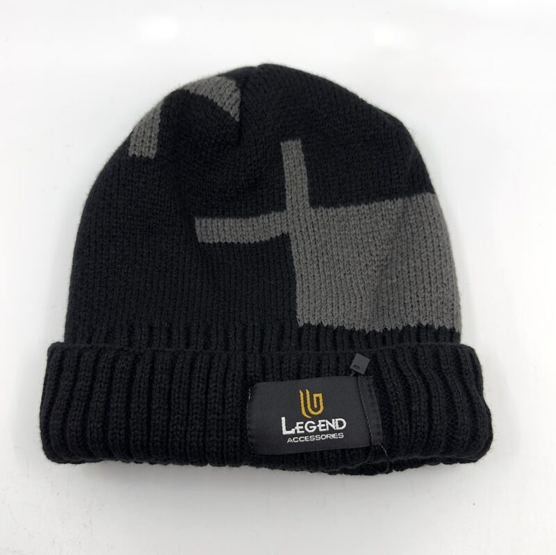 Men's knitted beanie with quality acrylic yarns, two-tone Black with Grey. A quality elastic cap with a perfect fit.