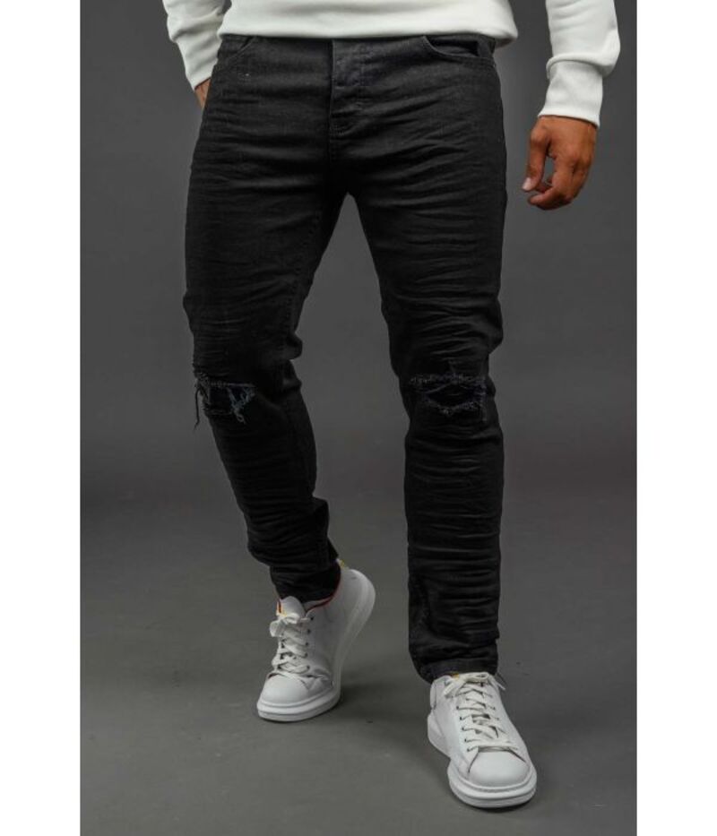 Male Jean Ben tailor Carter-Mavro. It has 5 pockets, 2 in front one that is double with a smaller pocket and two at the rear, it still has a branded patch on the back of the belt where it has the reverse logo Ben Tailor on it. It also has artificial damage. It has elasticity for daily use. Its line is slim fit. Jean for men of all ages from high quality and modern design, where it can be combined with a t-shirt from our collection for a casual look to stand out.