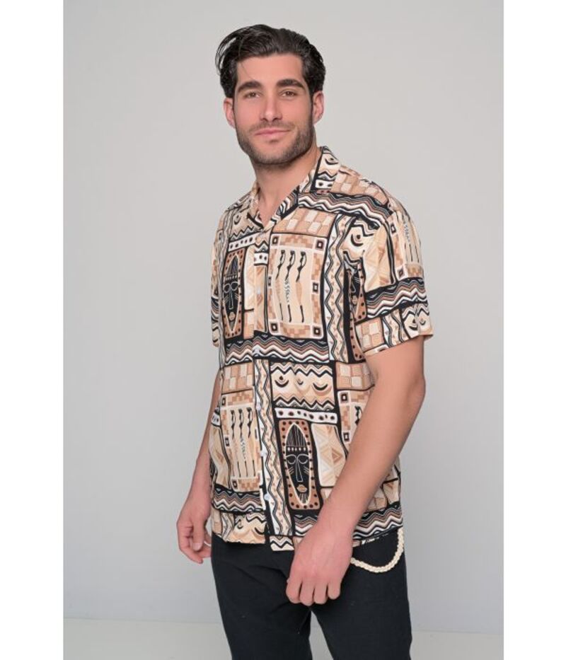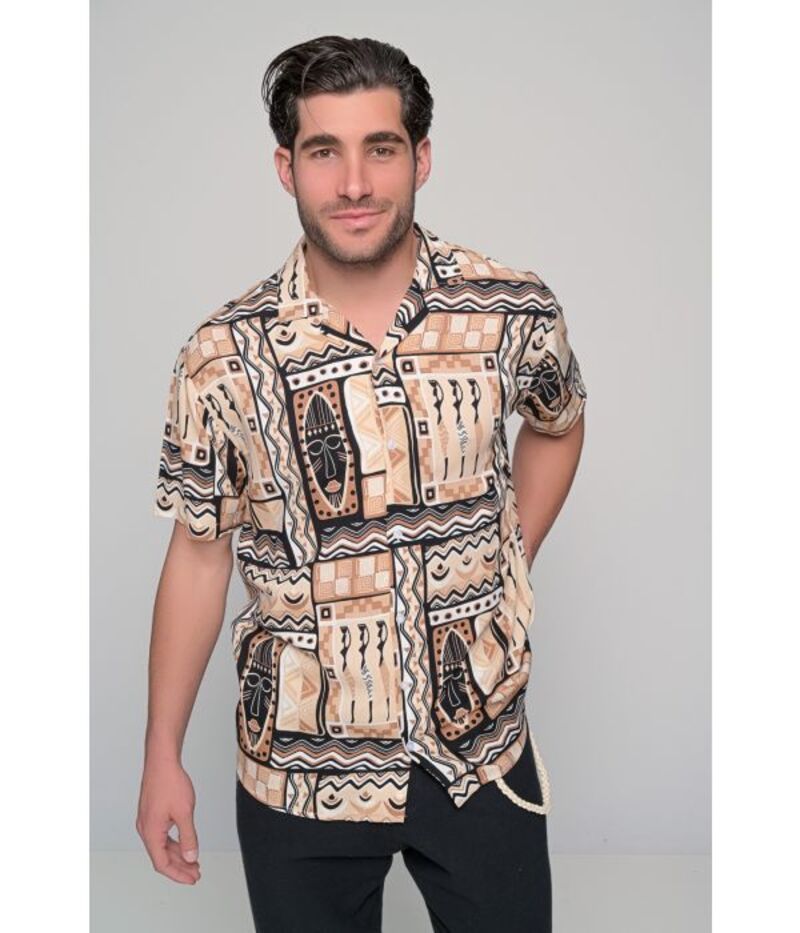 Men's shirt Inkas Ben Tailor. It has a T-shirt printed all over, it also has excellent quality fabric, a Bowling collar with short sleeves, it also has a front closure with buttons. His line is Slim fit. It is perfect with a pair of shorts or with a pair of trousers from our collection. Perfect for feeling like you're on vacation every day
