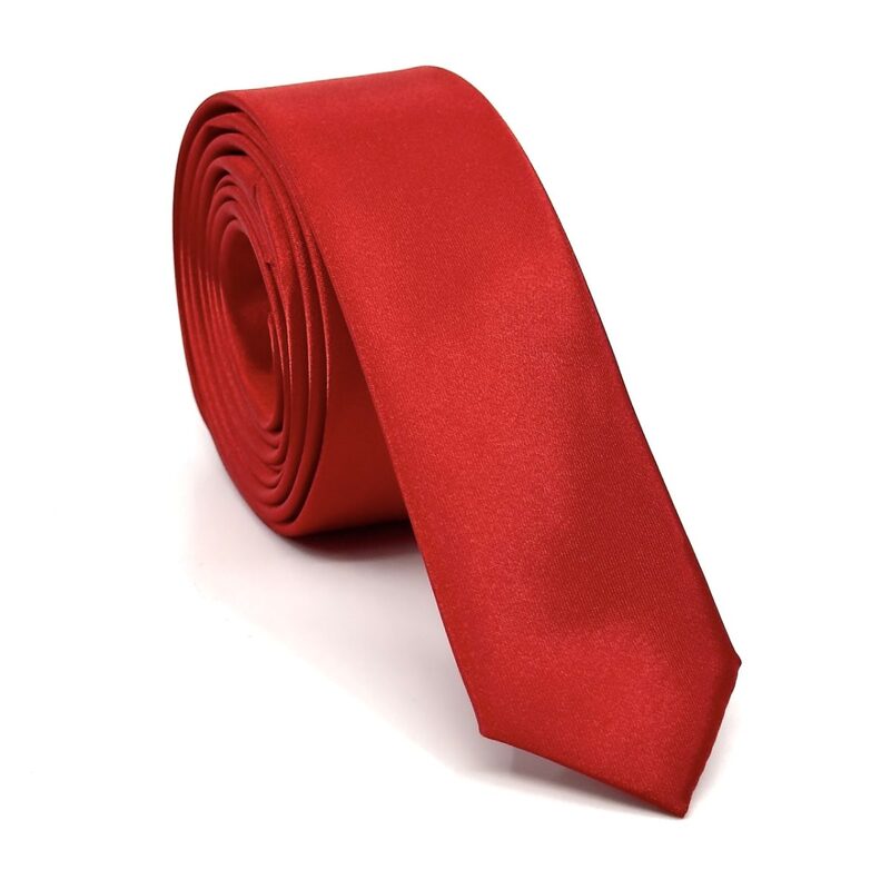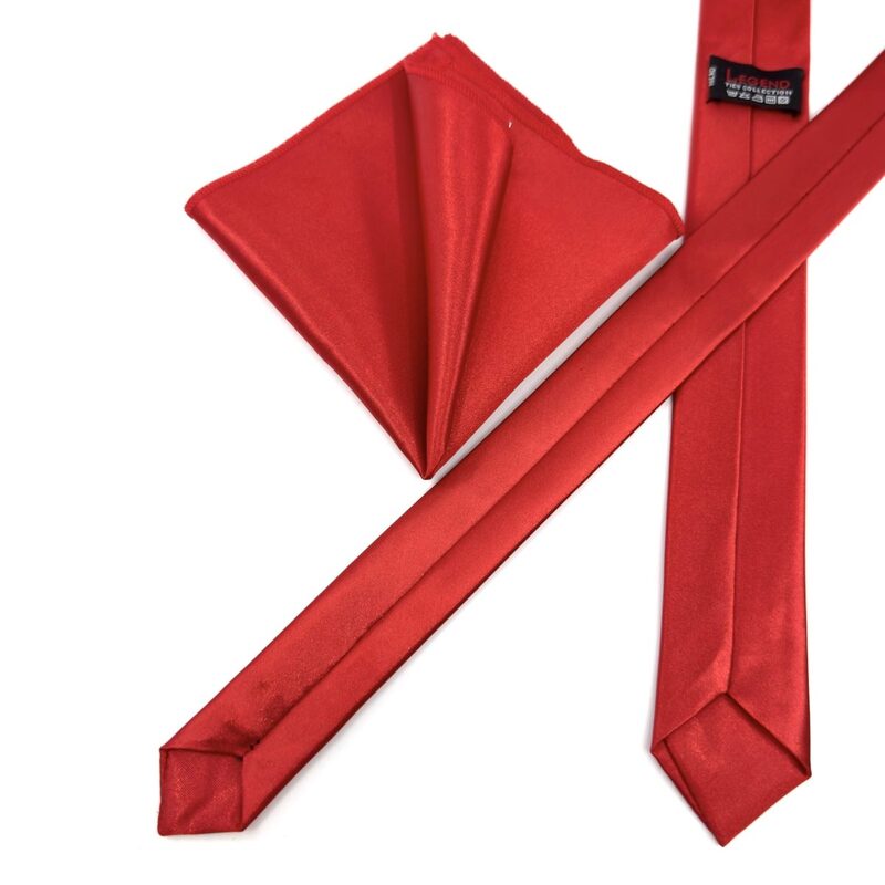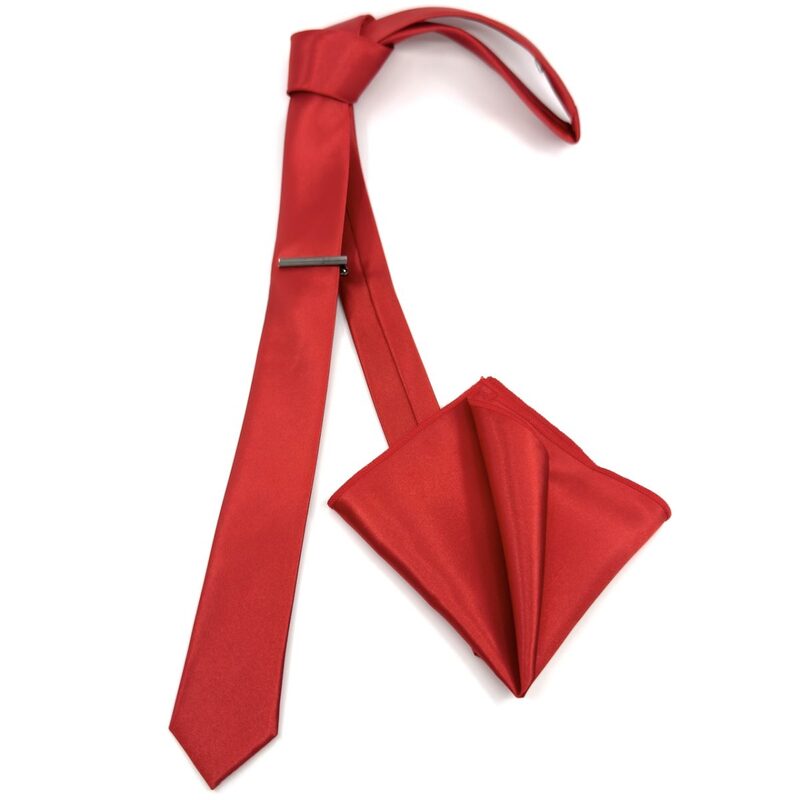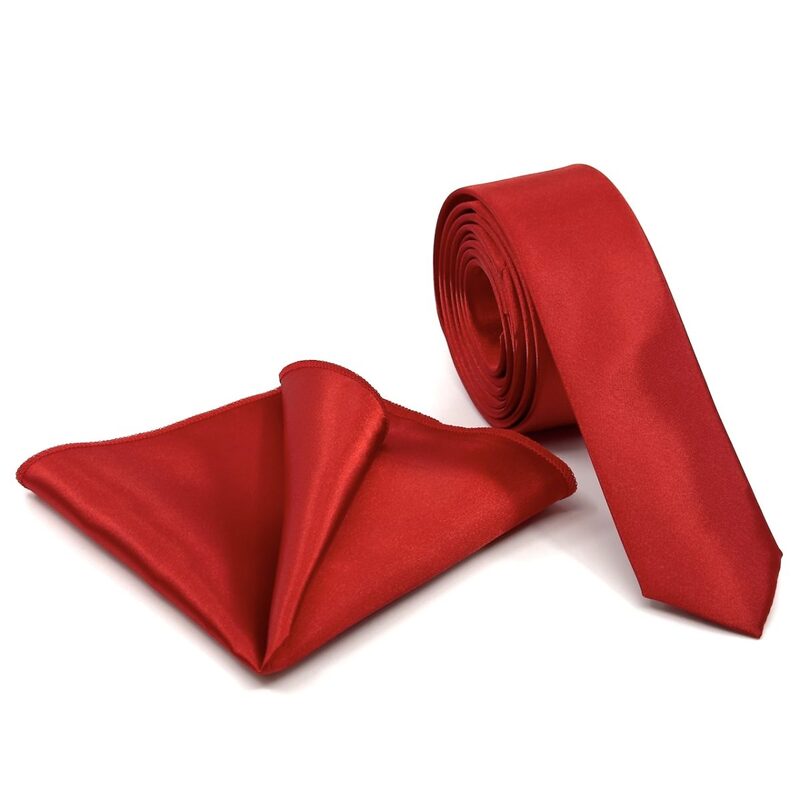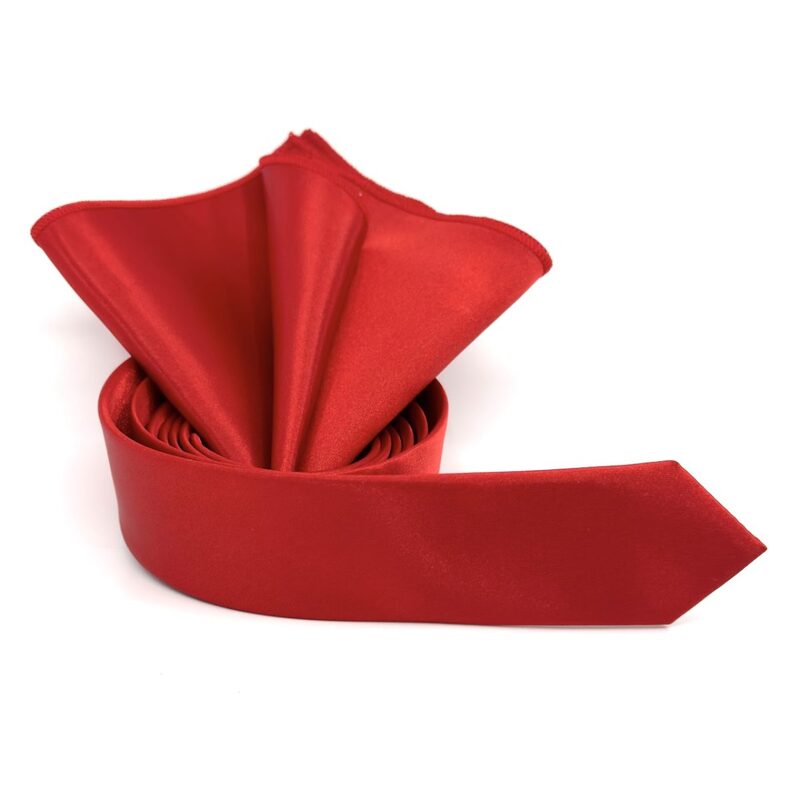 Στενή νεανική γραβάτα 4,5 cm σε γυαλιστερό ύφασμα σατέν σετ με μαντηλάκι, σε χρώμα Κόκκινο σκούρο.