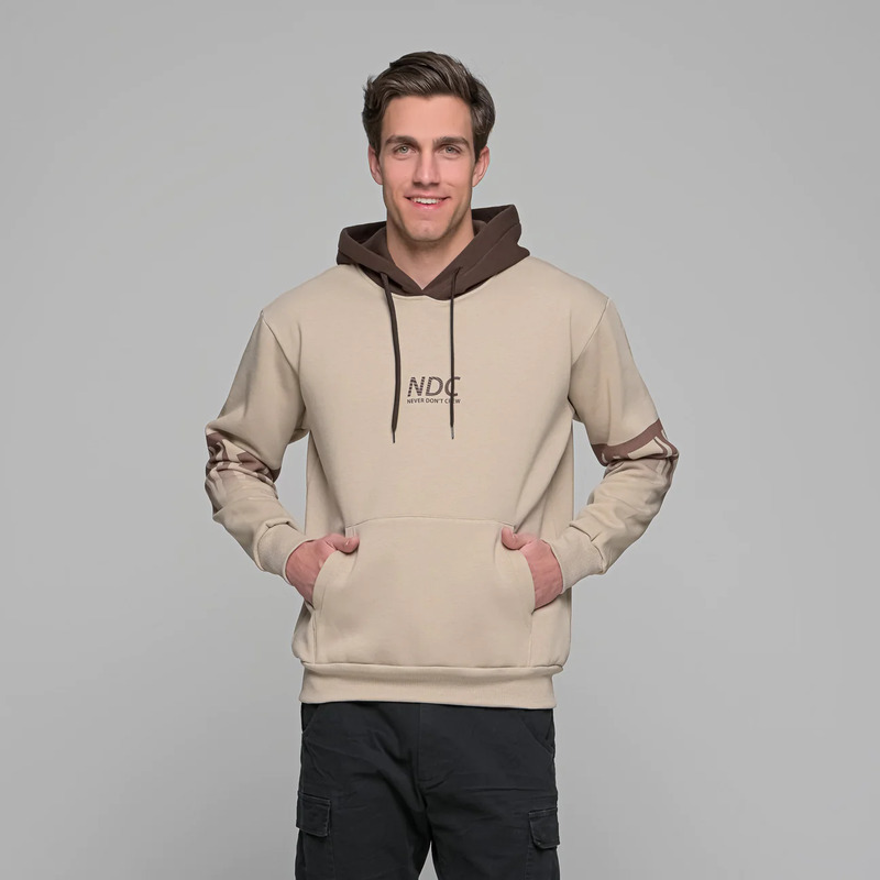 Ανδρικό φούτερ Ndc με κουκούλα σε χρώμα μαύρο, μπεζ και χακί. Φούτερ από ύφασμα υψηλής ποιότητας, με σχέδιο όπου έχει στάμπα μπροστά στο στήθος και στα μανίκια. Διαθέτει λάστιχο στην μέση και στο τελείωμα στα μανίκια, όπως έχει τσέπη τύπου καγκουρό. Η γραμμή του είναι Regular Fit από την νέα συλλογή της NDC που θα σας κάνει να ξεχωρίζετε από το πρωί έως το βραδύ για όλα τα στυλ.