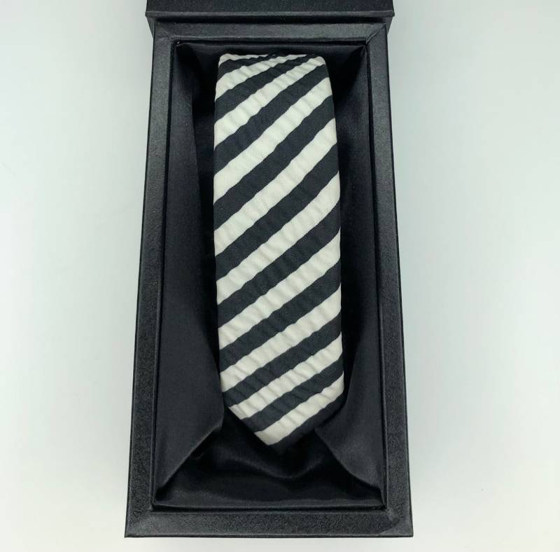 Γραβάτα τύπου Oxford σε λευκό με μαύρη ψιλή ρίγα