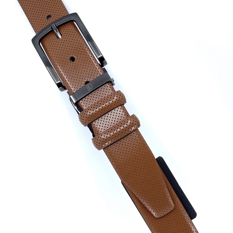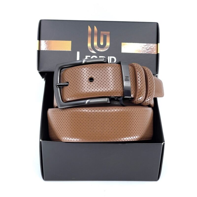 Δερμάτινη σχεδιαστική ζώνη legend soft touch με τέλεια εμφάνιση, σε χρώμα ταμπά, με αυτόματη μαύρη ποιοτική αγκράφα, με χαραγμένο το λογότυπο legend.