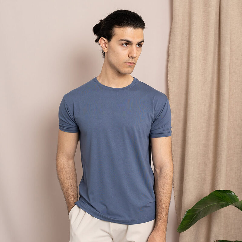 Ανάλαφρη μπλούζα από βισκόζη με διακριτικό υφαντό σε μπλε χρώμα.