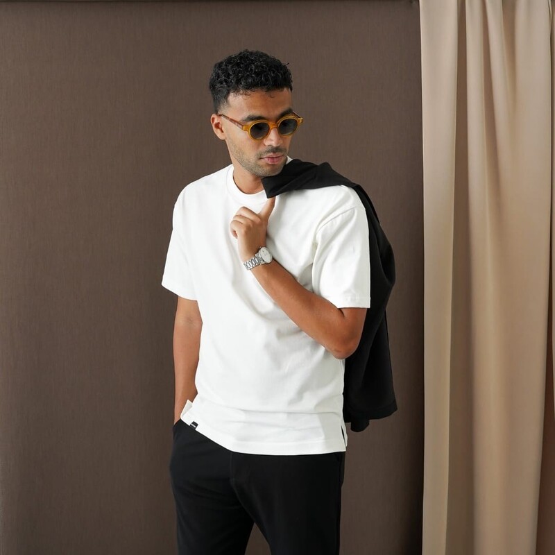 Oversized λευκό μπλουζάκι. Λαιμόκοψη σκίσιμο στο πλάι. Σύνθεση: 100% cotton Ελληνικής κατασκευής. Το μοντέλο έχει ύψος 1,80 και φοράει M