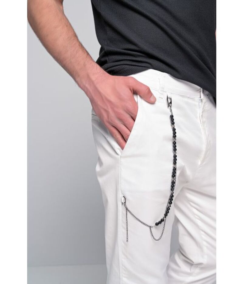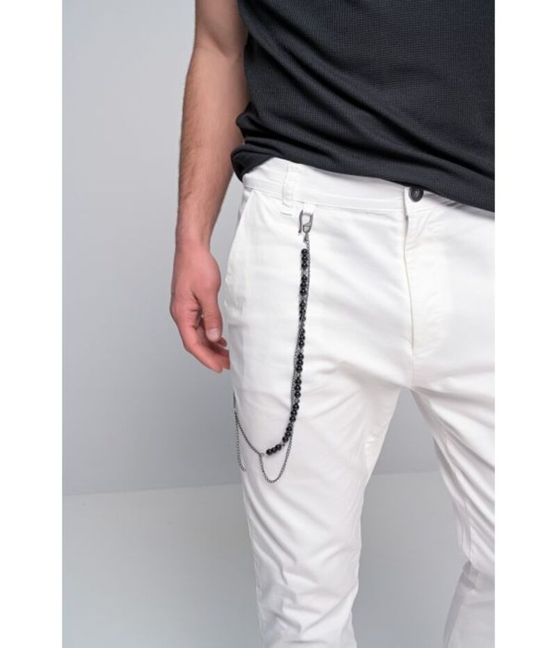 Ανδρικό παντελόνι Royal Ben Tailor. Διαθέτει τσέπες στο πλάι όπως και πίσω, ένα παντελόνι σε στυλ φόρμας με λάστιχο στην μέση και στο πίσω μέρος όπως και ρεβέρ τελείωμα έως τον αστράγαλο, επίσης θα βρείτε μια διακοσμητική αλυσίδα για μοναδικό στυλ. Η γραμμή του είναι Normal Fit. Δείξε τη διαφορετικότητα σου σήμερα συνδυάζοντας μοναδικά looks με το παντελόνι Royal της Ben Tailor.